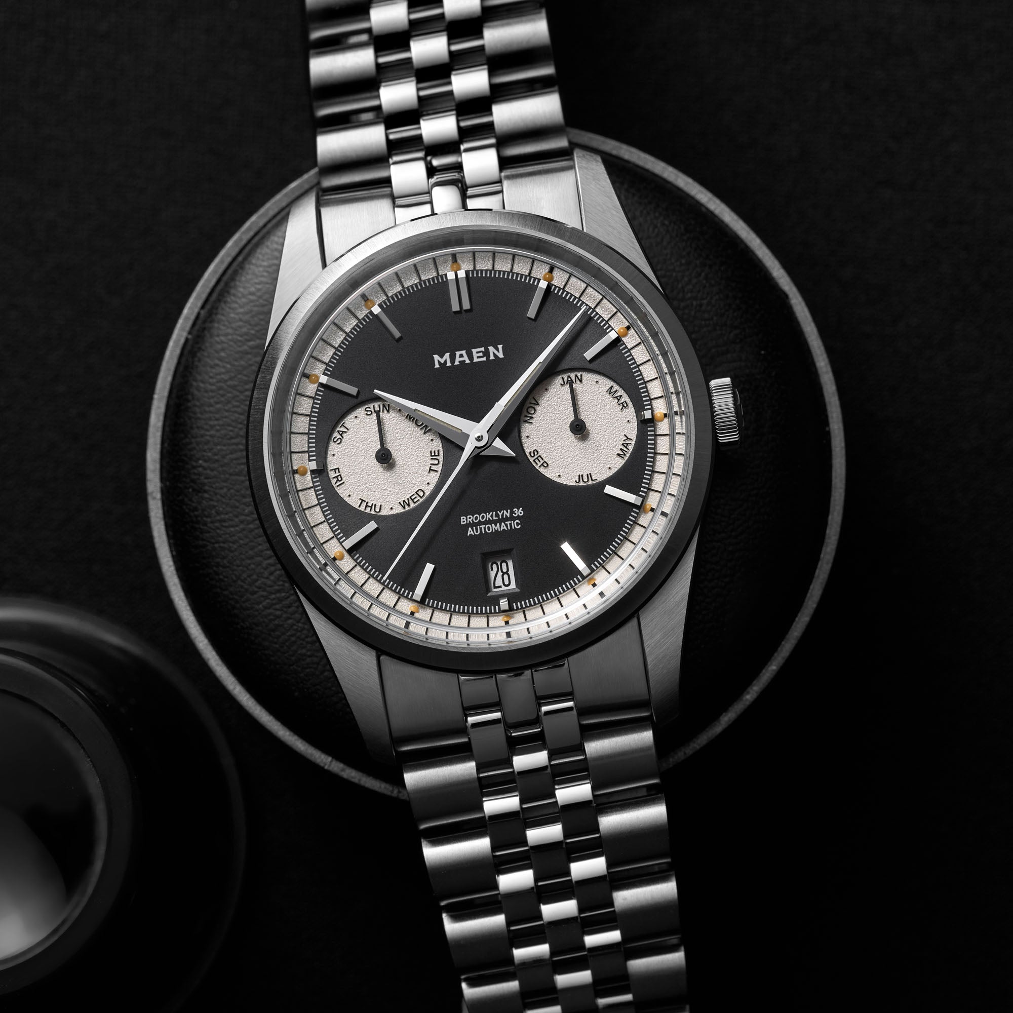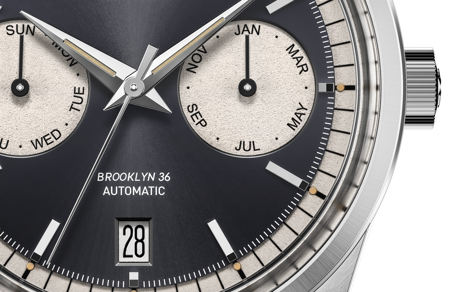 The dial is definitely one of the highlights of the Brooklyn 36. We spent lots of time finding the right balance between design and legibility to house the full triple calendar complication.