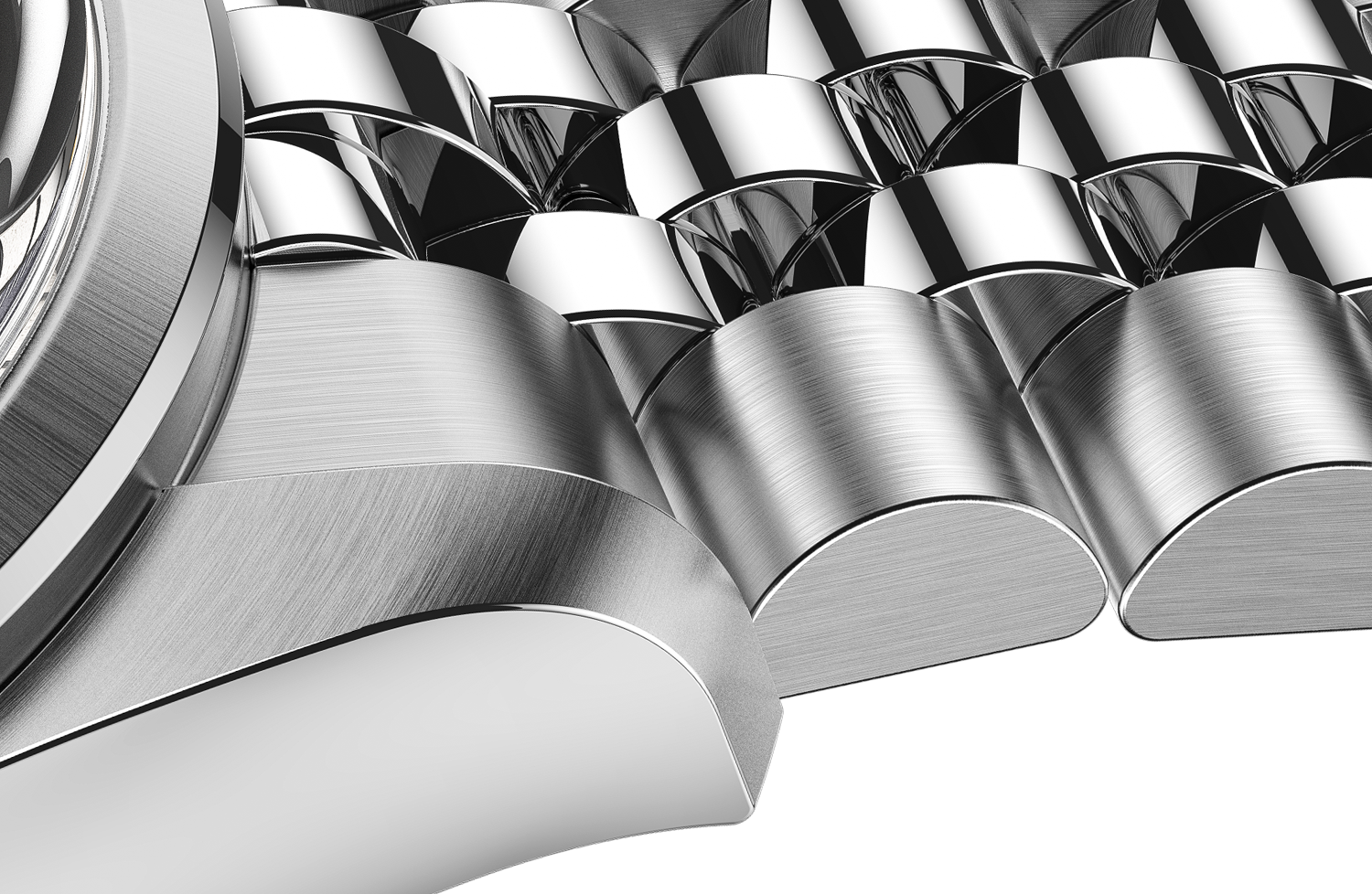 This alteration of finishes is repeated on the bracelet where the smaller central links are polished. We also wanted to create a sense of depth by deliberately setting the end links slightly lower than the lugs.