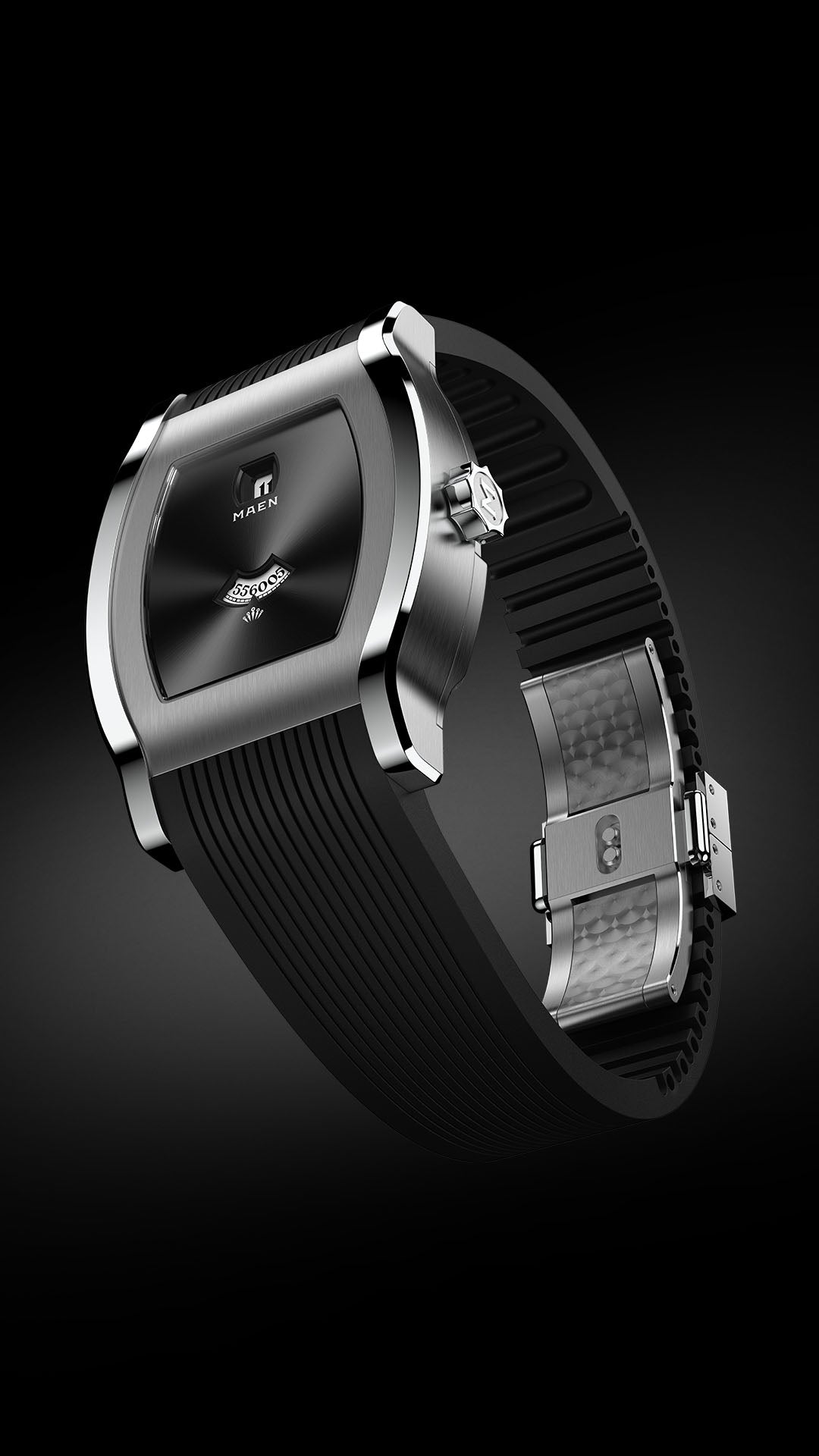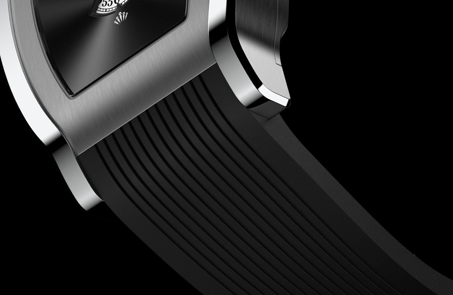 For the Grand Tonneau Jump Hour, we have designed a custom integrated FKM rubber strap that seamlessly follows the contours of the case, accentuating its striking angles. Crafted from premium FKM rubber, the strap offers exceptional durability and a comfortable fit.