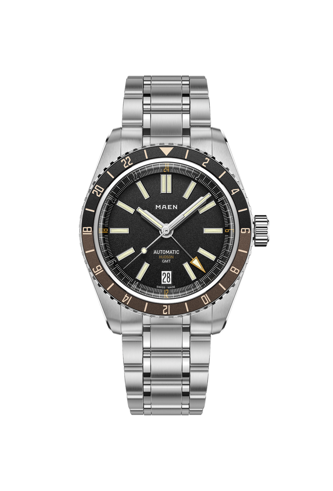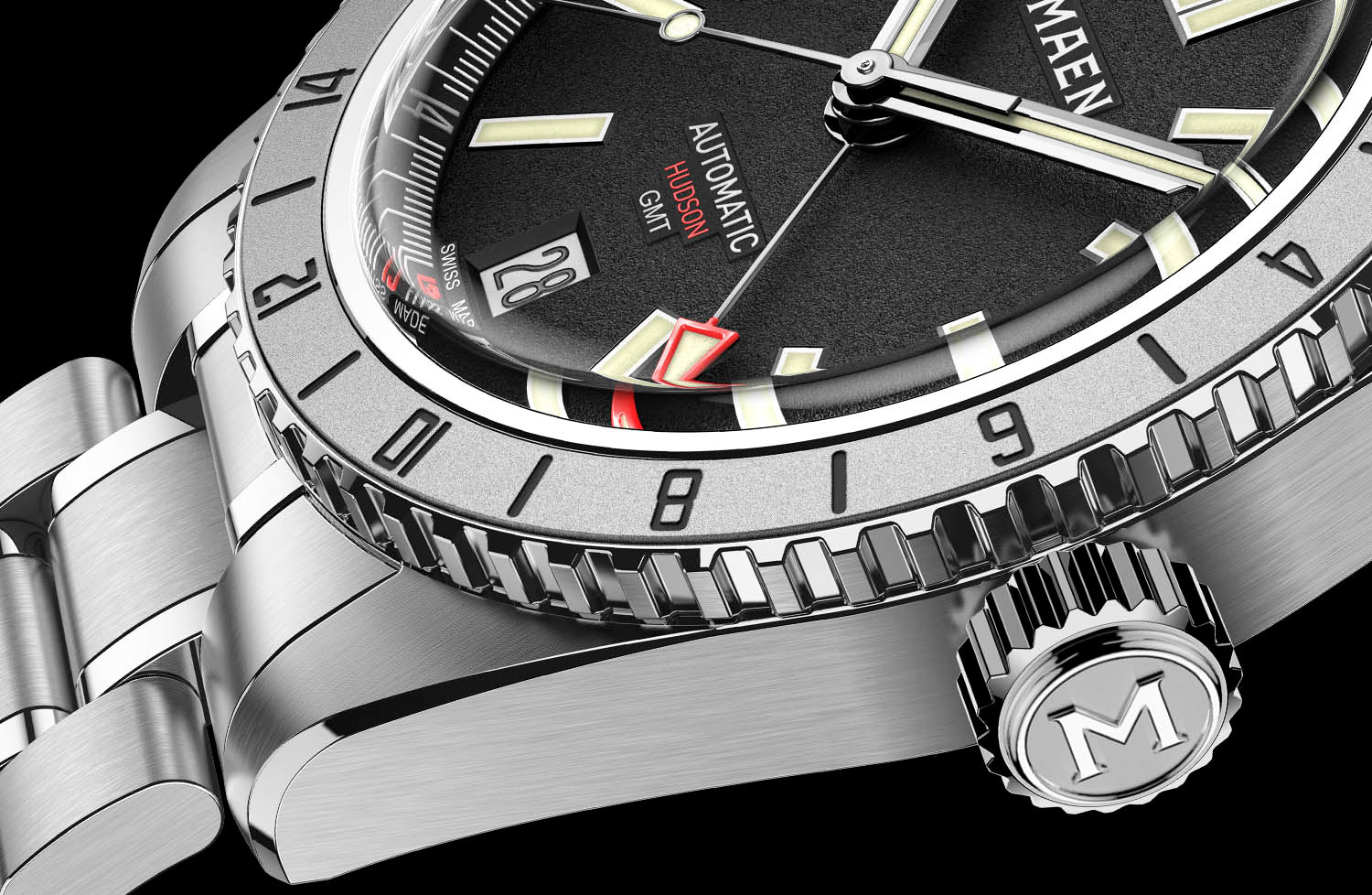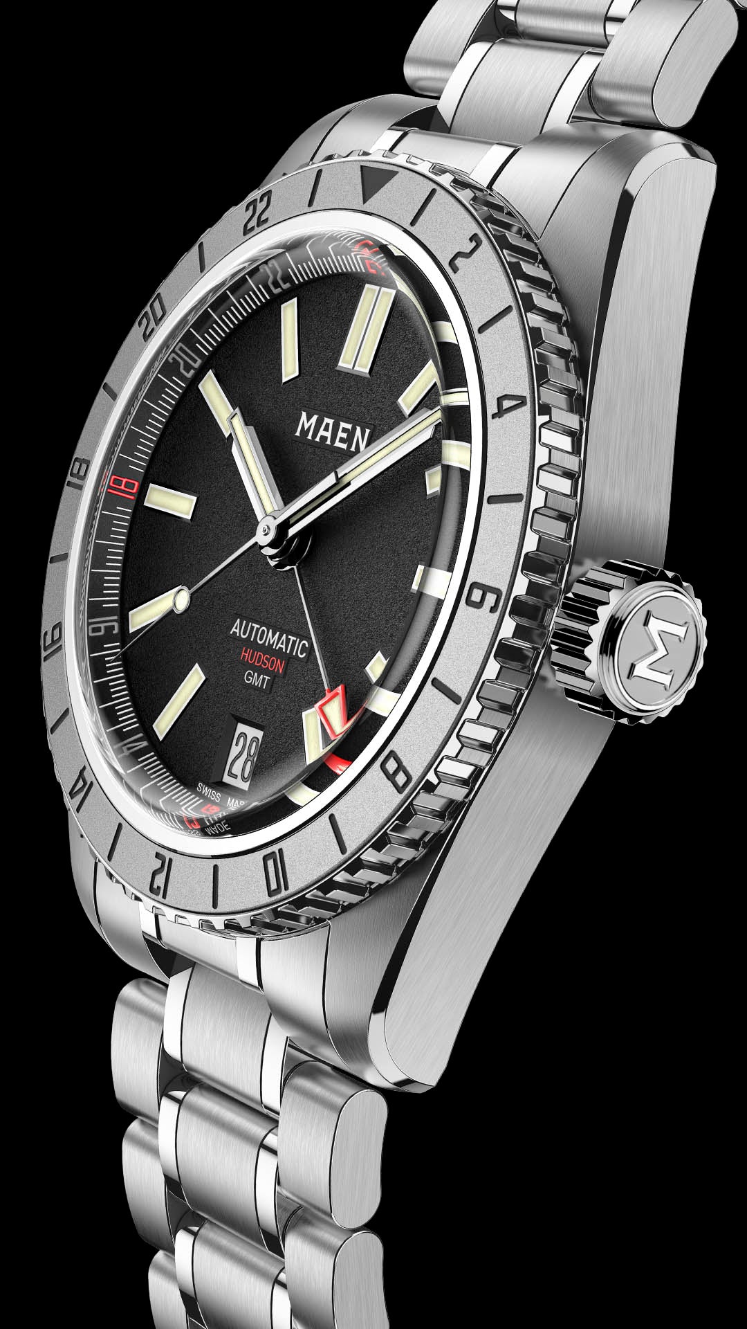 The Hudson Automatic is assembled in La Chaux-de-Fonds, Switzerland. Waterproof testing, entrance inspection and final quality control is also performed in Switzerland.
