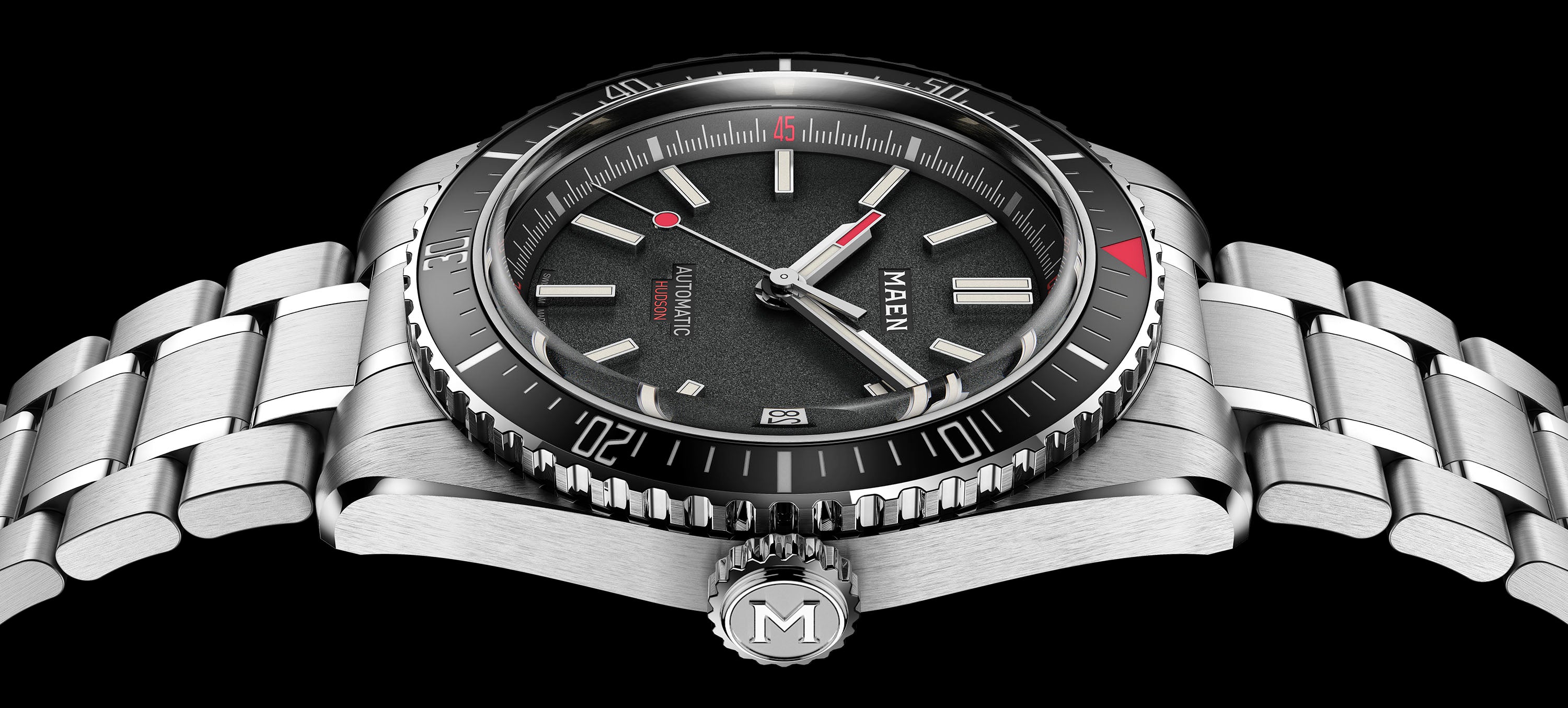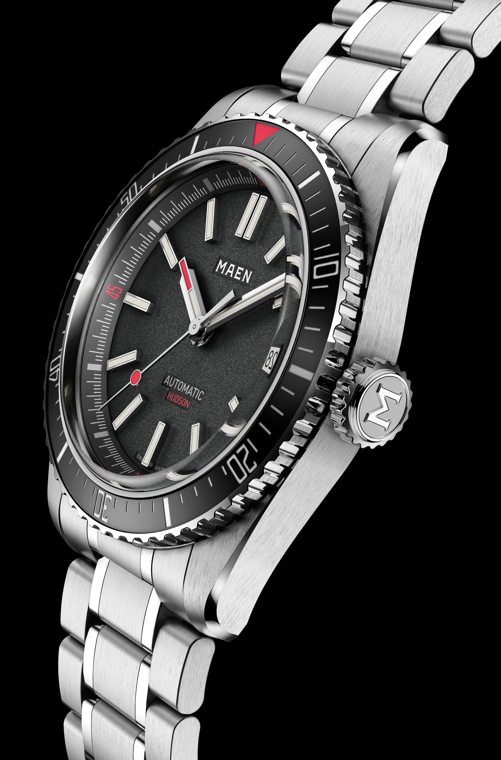 Meet the brand new and improved Hudson Automatic. Next to its powerful appearance, this elegant and vintage inspired dive watch is packed with many interesting features.