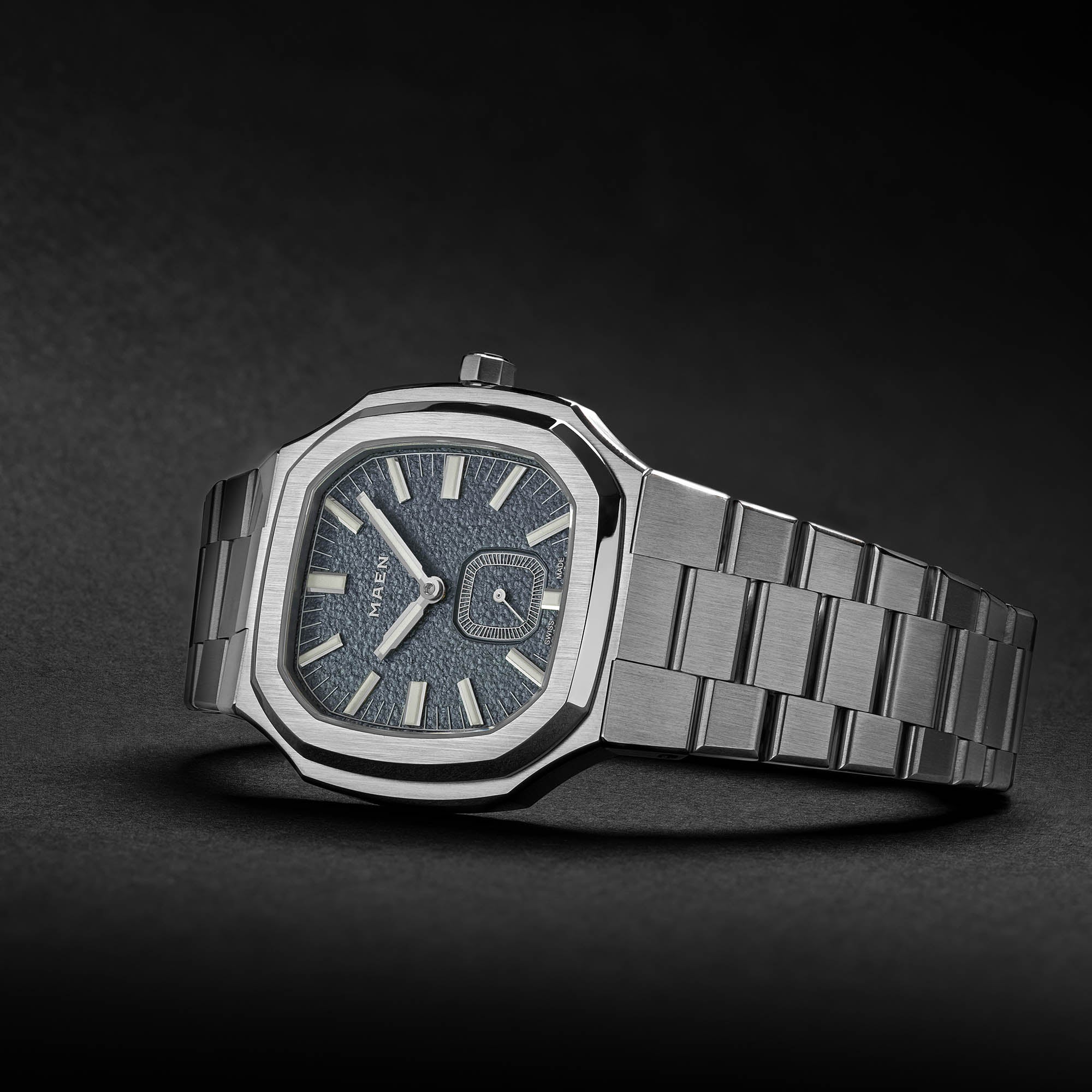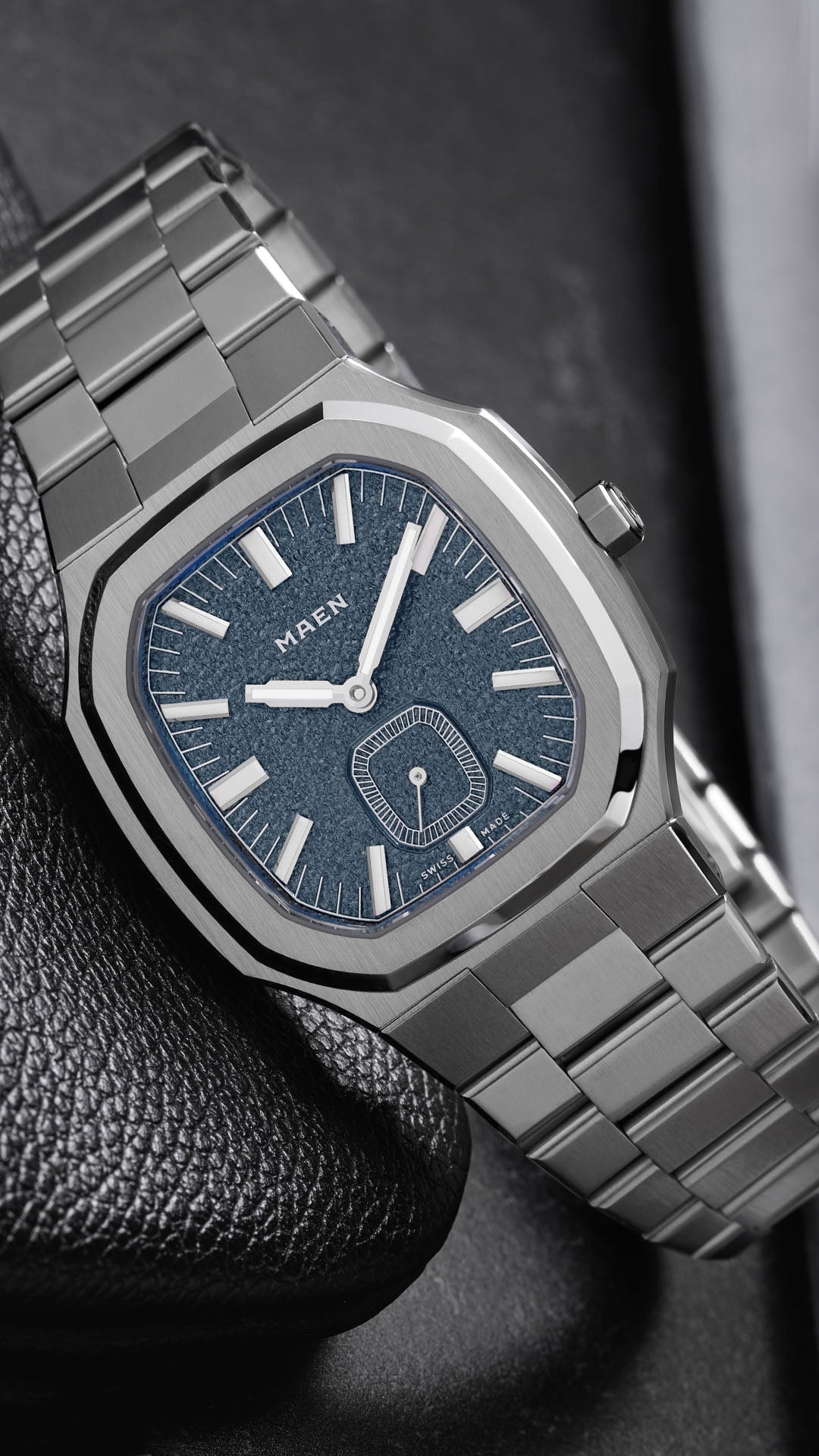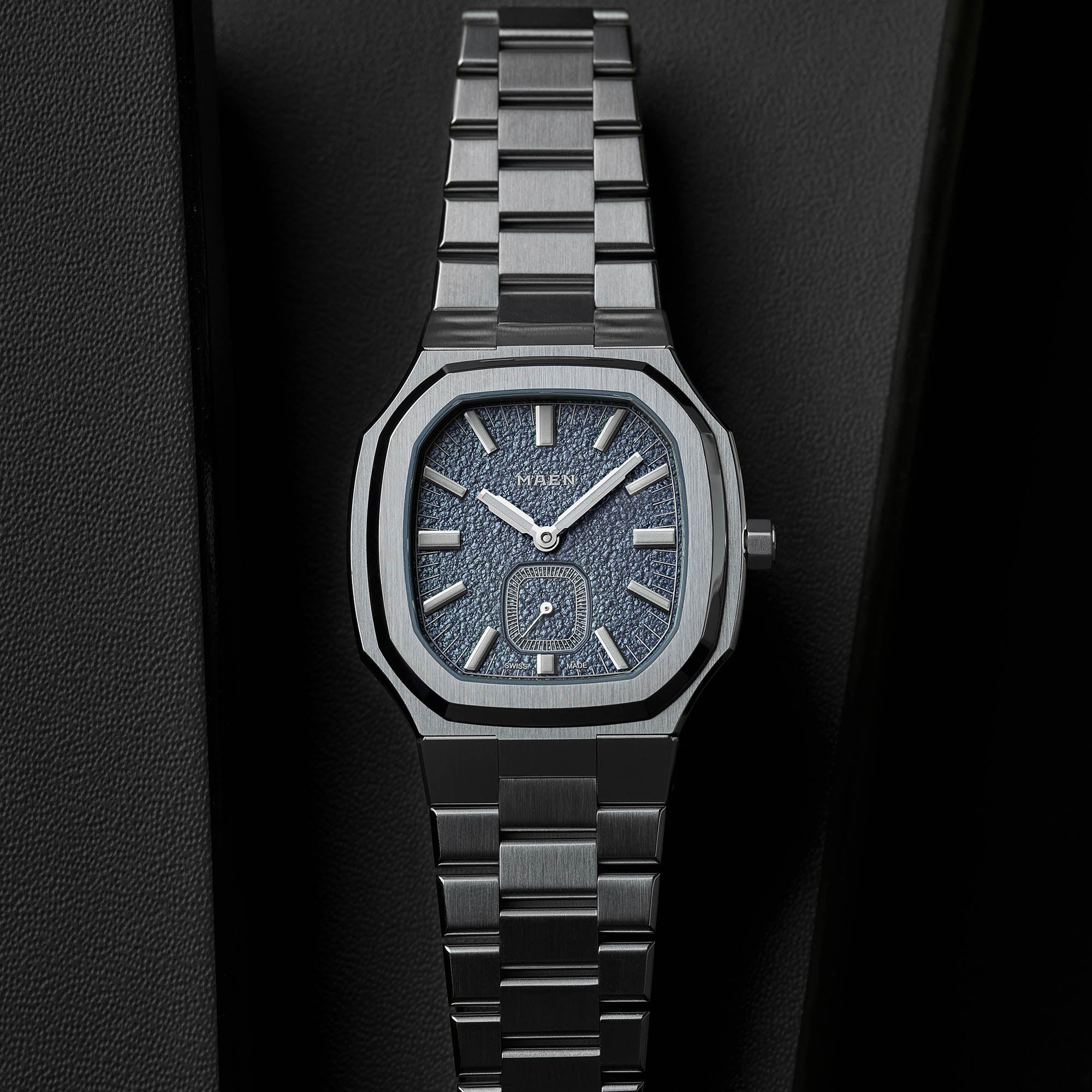 The Manhattan 37 Ultra-Thin features an integrated stainless steel bracelet with a hidden deployment clasp. We did not cut any corners with this bracelet.