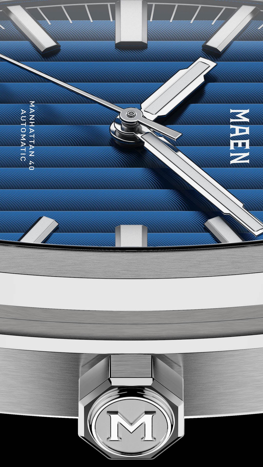 The Manhattan 40 has an unique vertically elongated Côtes de Genève dial that creates a spectrum of beautiful shimmers depending on the lighting.