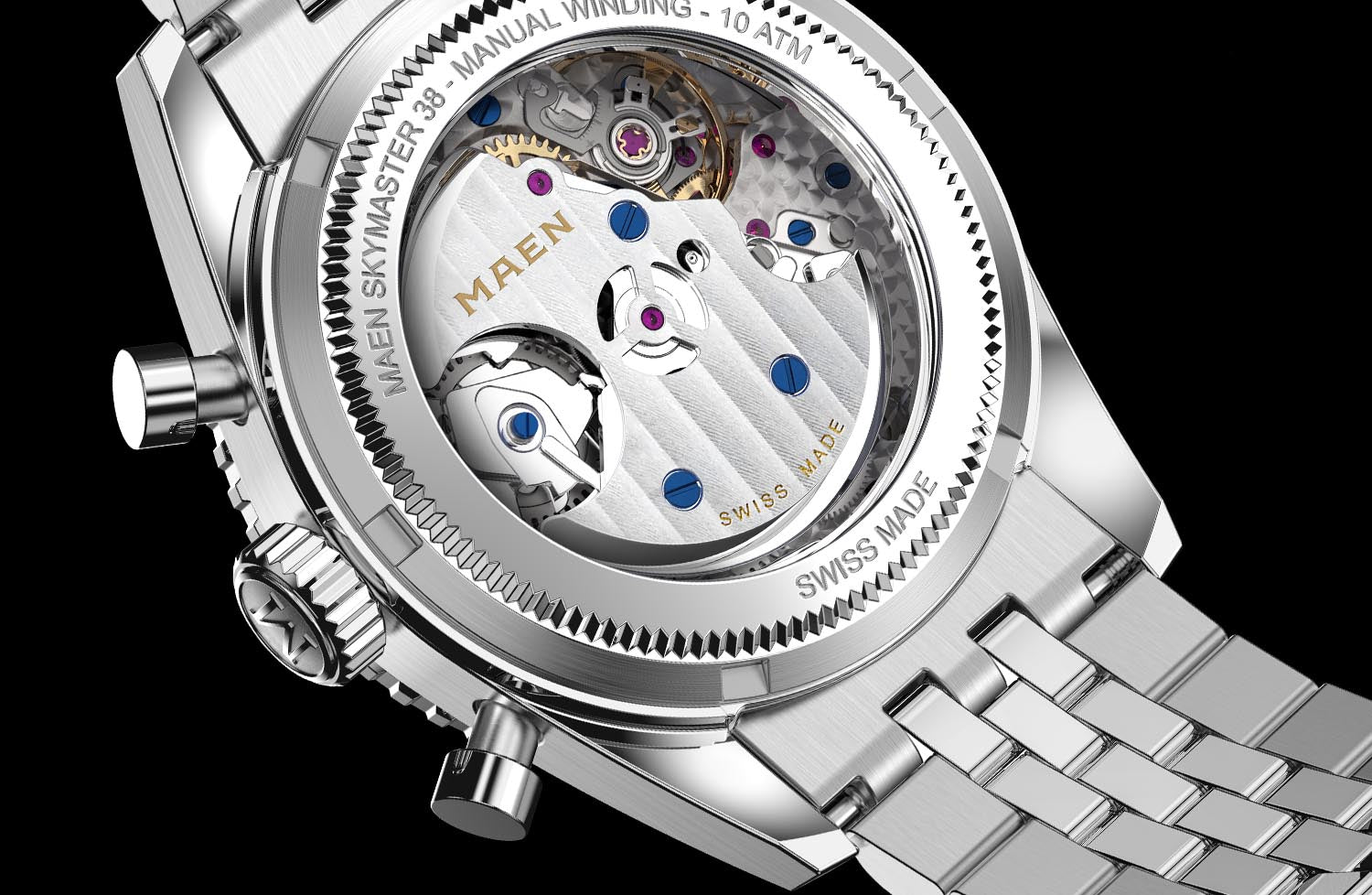 For the Skymaster we use the Top Grade, fully decorated version that can be seen through the open caseback. Designed to meet the highest horological standards, this movement guarantees exceptional accuracy and longevity, ensuring your timepiece remains a faithful companion for generations to come.